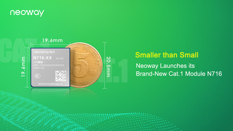 Based on its grasp of the development trend of 4G wireless communication technology and a deep understanding of the demand for industrial IoT access communication, Neoway has further enriched its 4G Cat.1 product series and recently launched a new generation of Cat.1 product N716, Cat.1 cellular module of the smallest size in the industry. N716 is suitable for shared electric vehicles, shared bicycles, shared scooters, electronic locks, and other scenarios. It can also can be applied to various mobile tracking scenarios, such as wearable devices, student cards, pet location trackers, and asset trackers. N716 can be used in public network intercom and in-vehicle terminal scenarios that require high-quality voice function. In addition, N716 can be used in financial payment scenarios, such as electronic signature POS terminals, code scanning POS terminals, cloud speakers, and payment boxes, and industrial monitoring scenarios that require stable and reliable communication quality.